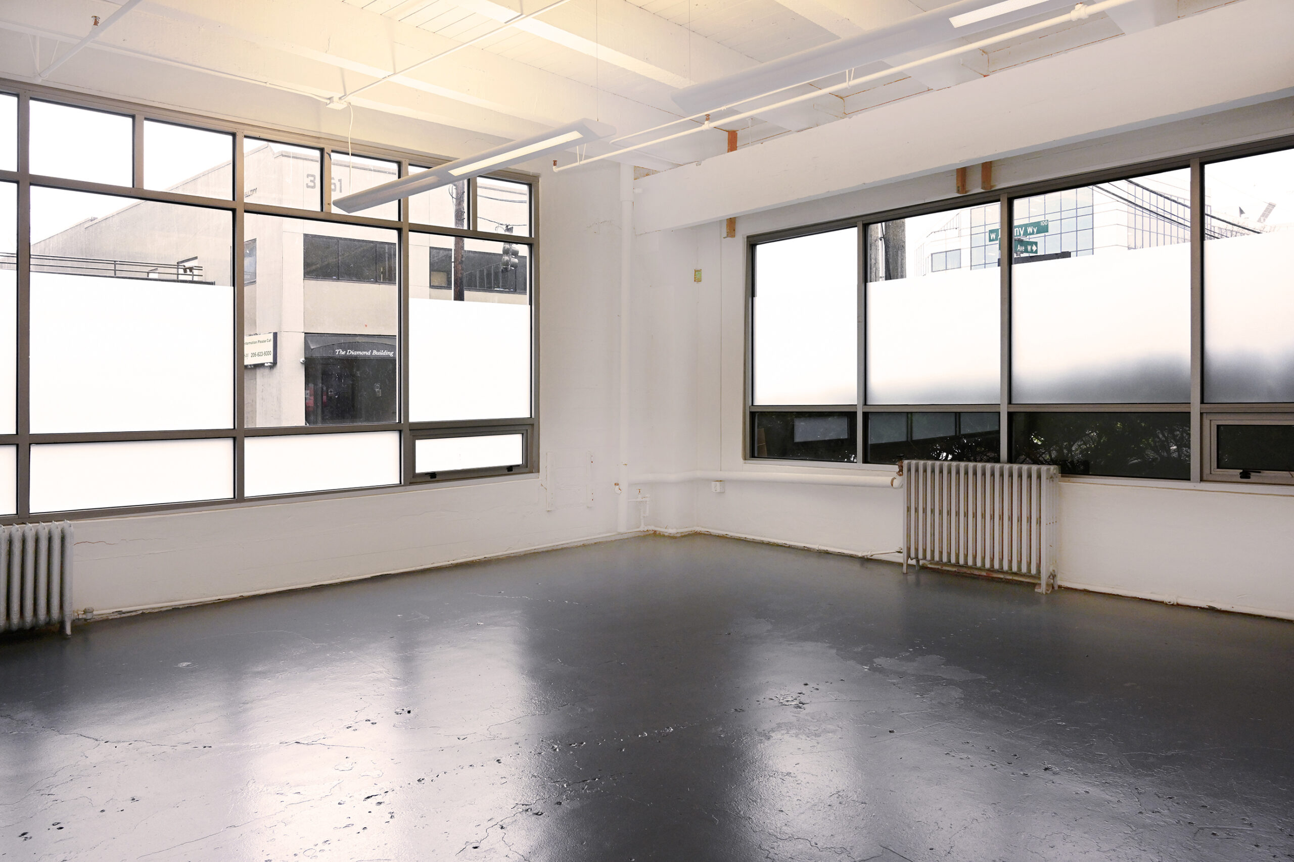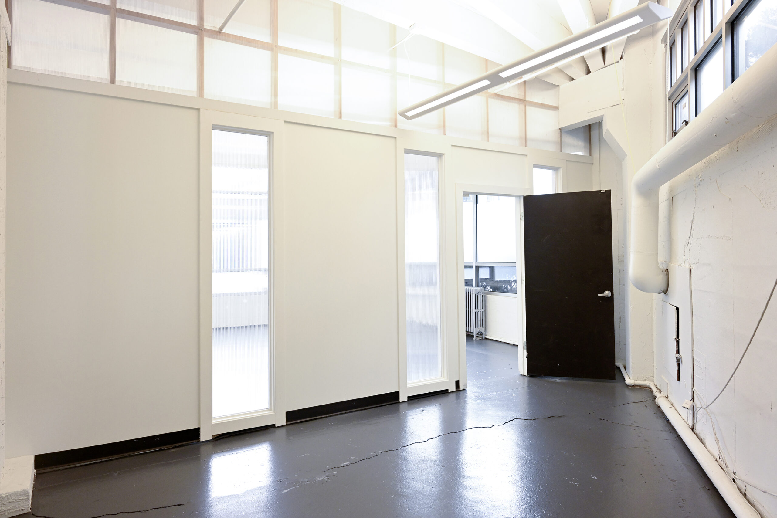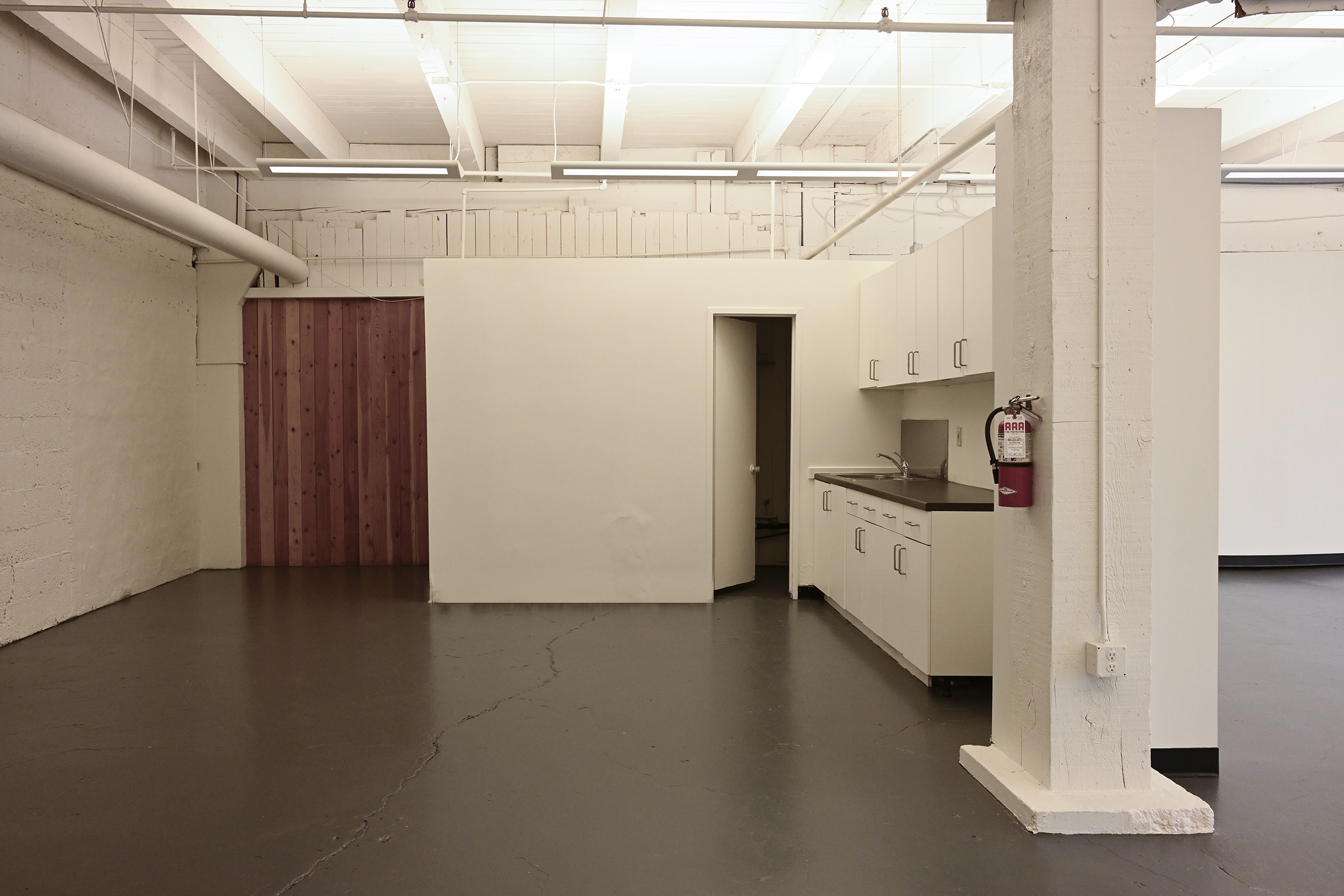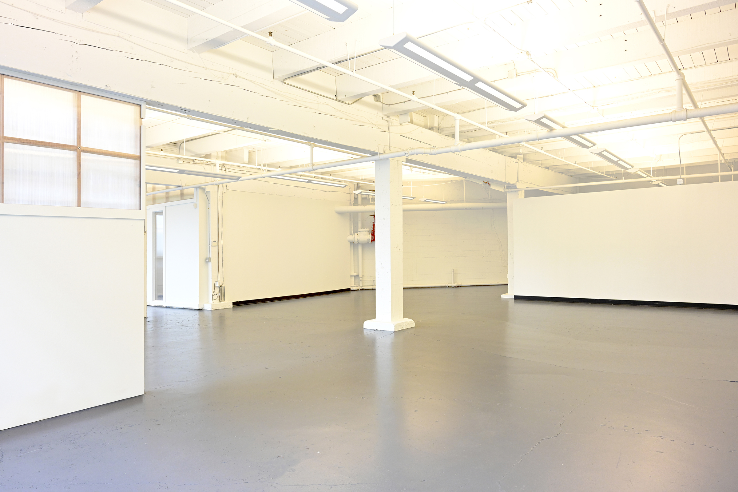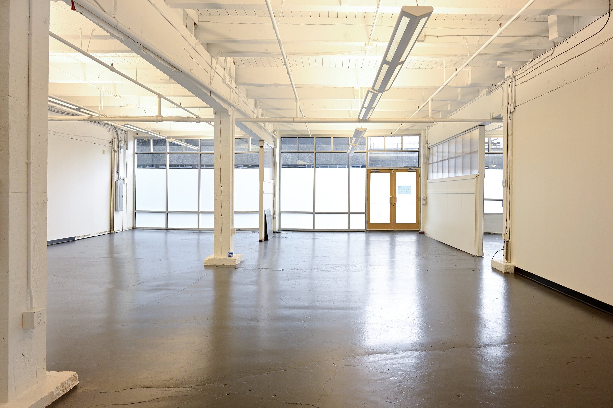 Street level warehouse style space with high ceilings, easy loading access, large double doors, kitchenette, private bathroom and concrete floors.  Great for a variety of uses.